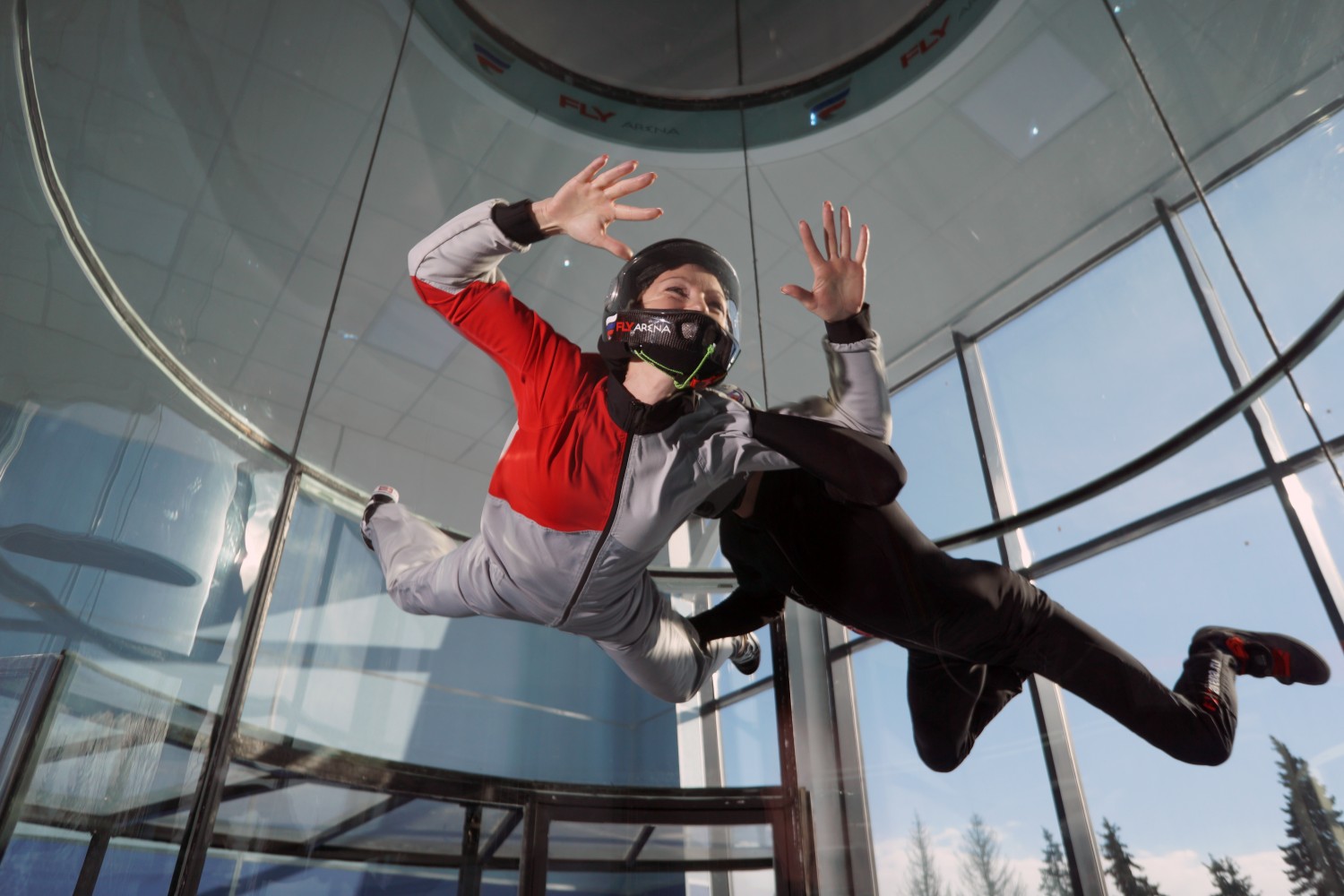 Размеры полетной зоны (диаметр 3 м, высота 7 метров) позволяют не только свободно перемещаться одному человеку, но и летать двум спортсменам одновременно.